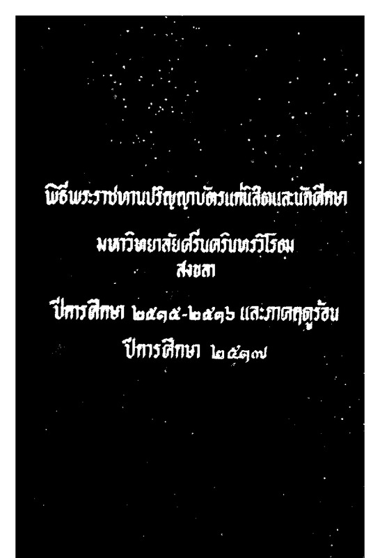 พิธีพระราชทานปริญญาบัตรแก่ผู้สำเร็จการศึกษาจากมหาวิทยาลัยศรีนครินทรวิโรฒ สงขลา ปีการศึกษา 2518-2519 วันพฤหัสบดีที่ 2 กันยายน พ.ศ. 2519
