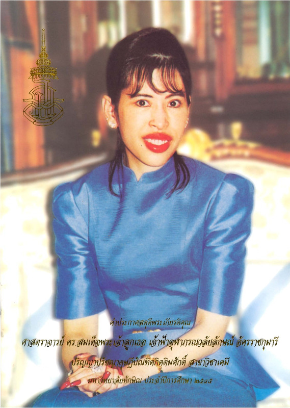 คำประกาศสดุดีพระเกียรติคุณศาสตราจารย์ ดร.สมเด็จพระเจ้าลูกเธอ เจ้าฟ้าจุฬาภรณ์วลัยลักษณ์อัครราชกุมารี ปริญญาปรัชญาดุษฎีบัณฑิตกิตติมศักดิ์ สาขาวิชาเคมี มหาวิทยาลัยทักษิณ ประจำปีการศึกษา 2545 วันที่ 11 พฤศจิกายน 2546