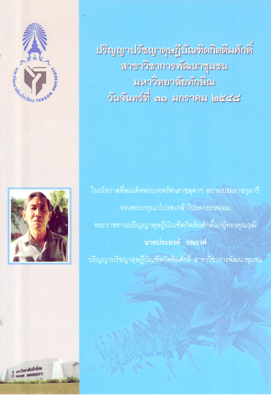 ปริญญาปรัชญาดุษฎีบัณฑิตกิตติมศักดิ์ สาขาวิชาการพัฒนาชุมชน มหาวิทยาลัยทักษิณ ประจำปีการศึกษา 2547 วันที่ 31 มกราคม 2548