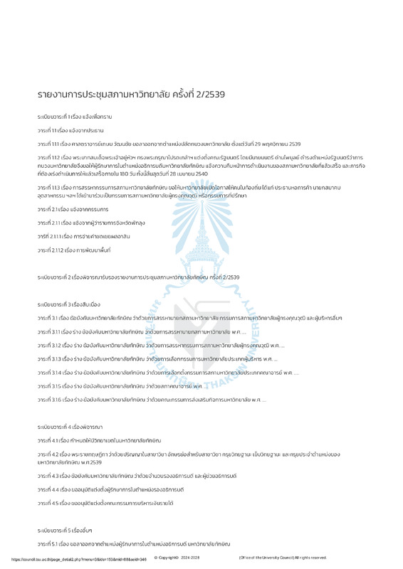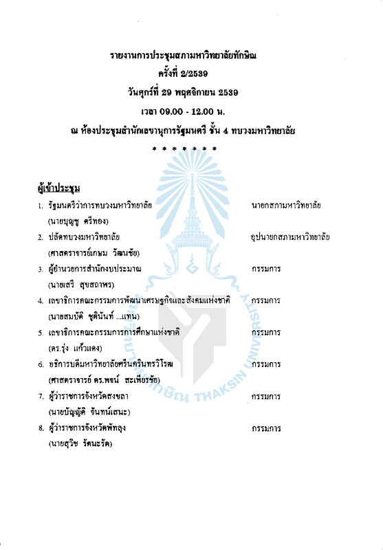 รายงานการประชุมสภามหาวิทยาลัย ครั้งที่ 2/2539 วันศุกร์ที่ 29 พฤศจิกายน 2539