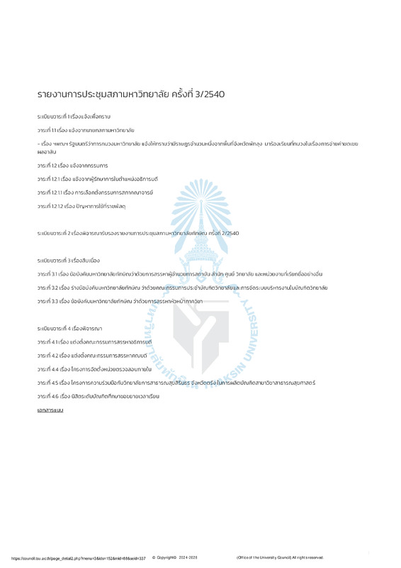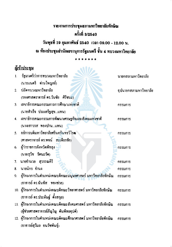 รายงานการประชุมสภามหาวิทยาลัย ครั้งที่ 3/2540 วันพุธที่ 19 กุมภาพันธ์ 2540