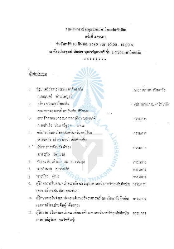 รายงานการประชุมสภามหาวิทยาลัย ครั้งที่ 4/2540 วันจันทร์ที่ 10 มีนาคม 2540