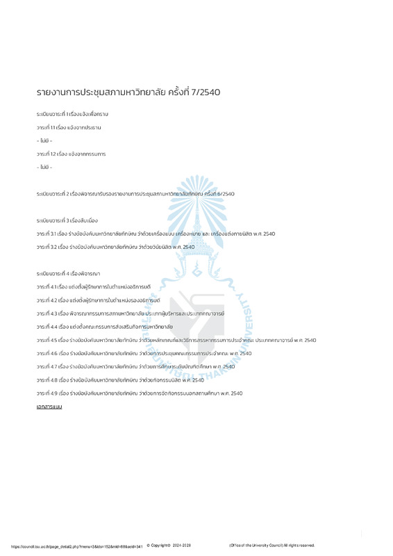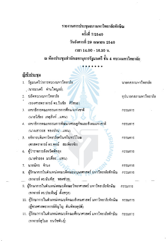 รายงานการประชุมสภามหาวิทยาลัย ครั้งที่ 7/2540 วันอังคารที่ 29 เมายน 2540