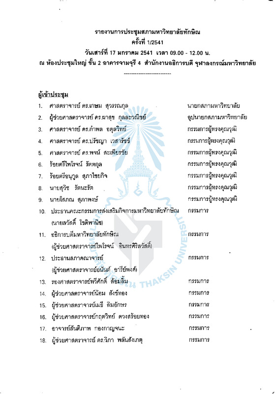 รายงานการประชุมสภามหาวิทยาลัย ครั้งที่ 1/2541 วันเสาร์ที่ 17 มกราคม 2541