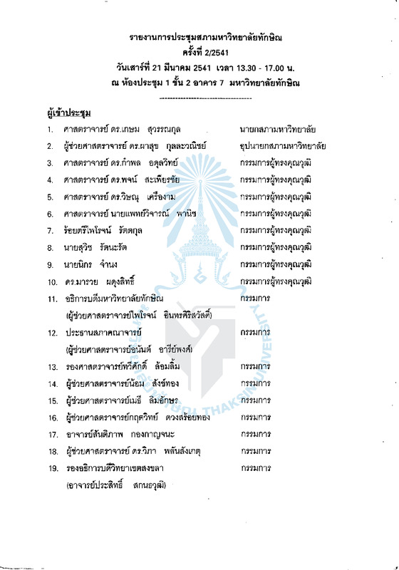 รายงานการประชุมสภามหาวิทยาลัย ครั้งที่ 2/2541 วันเสาร์ที่ 21 มีนาคม 2541