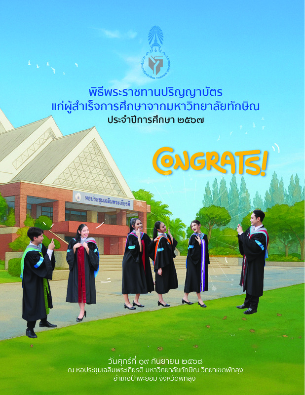 พิธีพระราชทานปริญญาบัตร มหาวิทยาลัยทักษิณ ประจำปีการศึกษา 2567 วันที่ 19 กันยายน พ.ศ. 2568