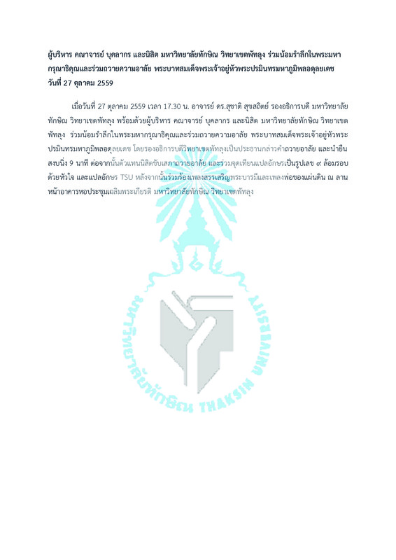 บันทึกข้อตกลงความร่วมมือทางวิชาการระหว่างมหาวิทยาลัยทักษิณและโรงพยาบาลพัทลุง วันที่ 10 มิถุนายน พ.ศ. 2559