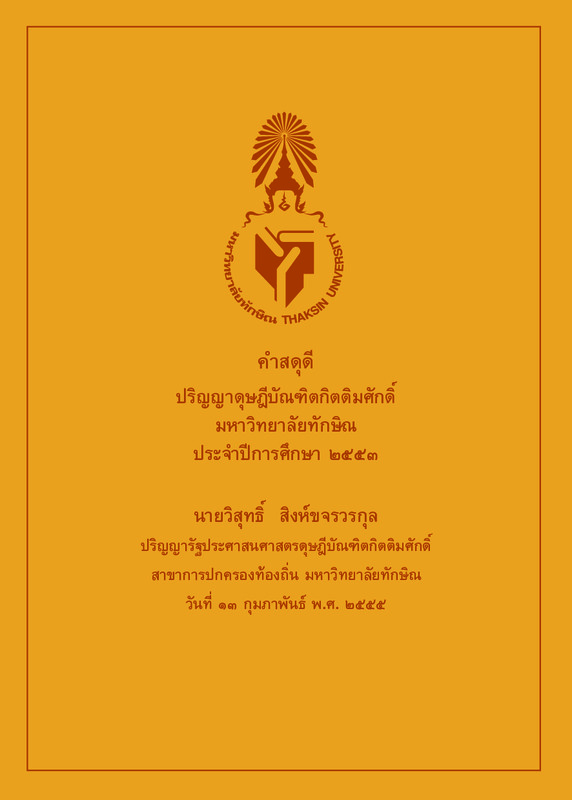 คำสดุดีปริญญาดุษฎีบัณฑิตกิตติมศักดิ์ มหาวิทยาลัยทักษิณ ประจำปีการศึกษา 2553 วันที่ 13 กุมภาพันธ์ 2555