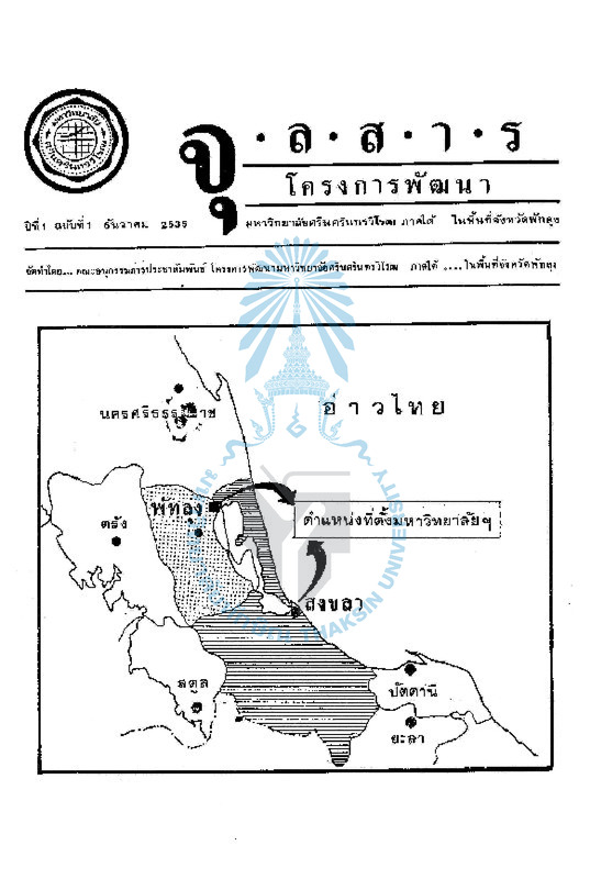 จุลสารโครงการพัฒนา มหาวิทยาลัยศรีนครินทรวิโรฒ ภาคใต้ ในพื้นที่จังหวัดพัทลุง ปีที่ 1 ฉบับที่ 1 ธันวาคม 2535