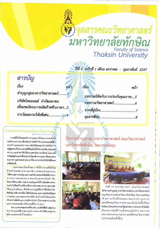จุลสารคณะวิทยาศาสตร์ มหาวิทยาลัยทักษิณ ปีที่ 5 ฉบับที่ 1 เดือน มกราคม - กุมภาพันธ์ 2557