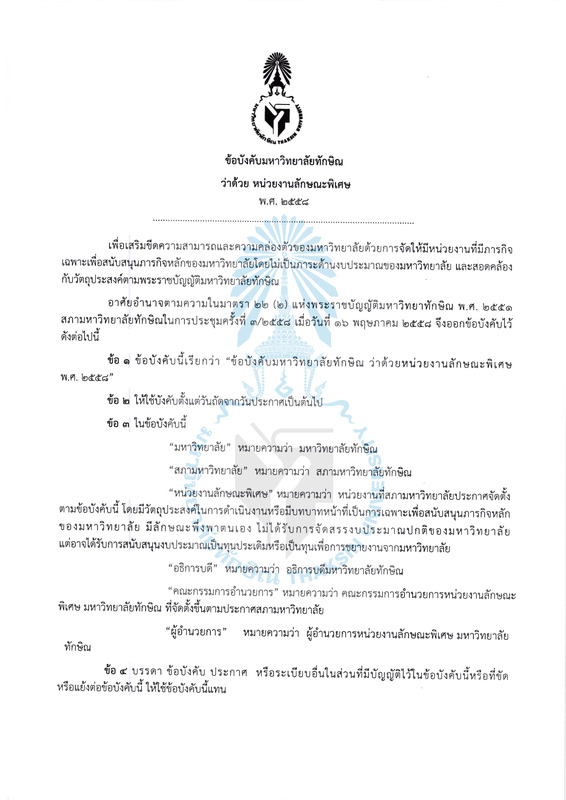 ข้อบังคับมหาวิทยาลัยทักษิณ ว่าด้วย หน่วยงานลักษณะพิเศษ พ.ศ. 2558