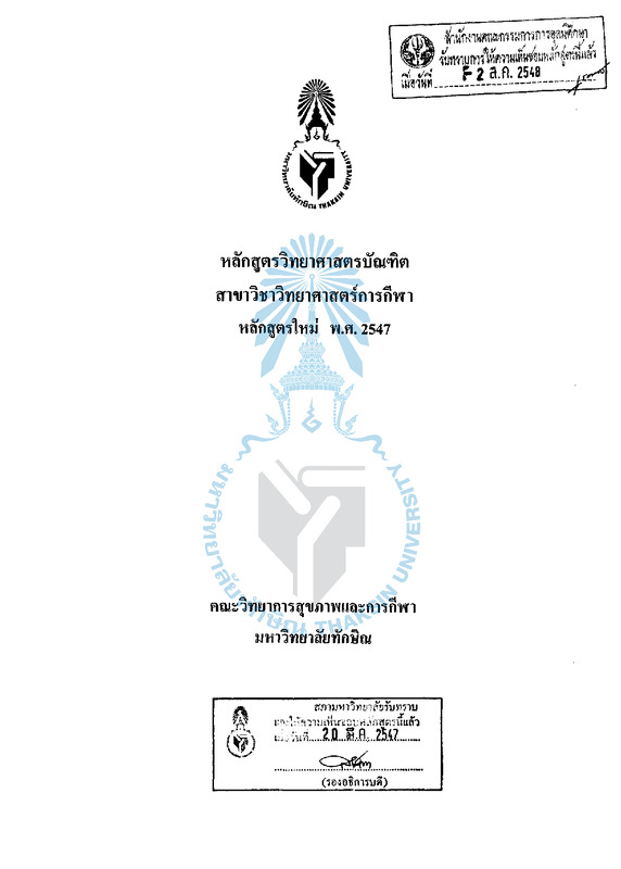 หลักสูตรวิทยาศาสตร์บัณฑิตสาขาวิชาวิทยาศาสตร์การกีฬา หลักสูตรใหม่ พ.ศ.2547 ประกาศ ณ วันที่ 16 กุมภาพันธ์ 2541