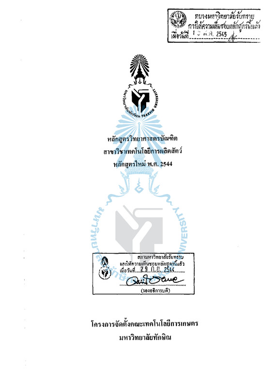 หลักสูตรวิทยาศาสตร์บัณฑิตสาขาวิชาเทคโนโลยีการผลิตสัตว์ หลักสูตรใหม่ พ.ศ.2547 ประกาศ ณ วันที่ 16 กุมภาพันธ์ 2541