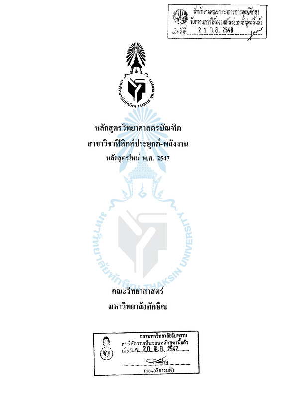 หลักสูตรวิทยาศาสตร์บัณฑิตสาขาวิชาฟิสิกส์ประยุกต์-พลังงาน หลักสูตรปรับปรุง พ.ศ.2547 ประกาศ ณ วันที่ 16 กุมภาพันธ์ 2541