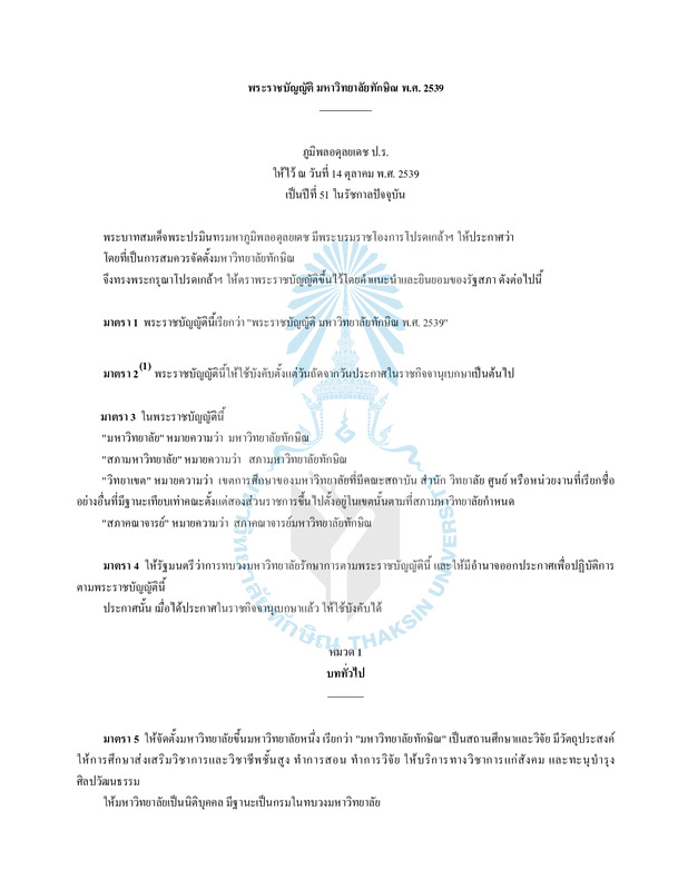 พระราชบัญญัติ มหาวิทยาลัยทักษิณ พ.ศ. 2539