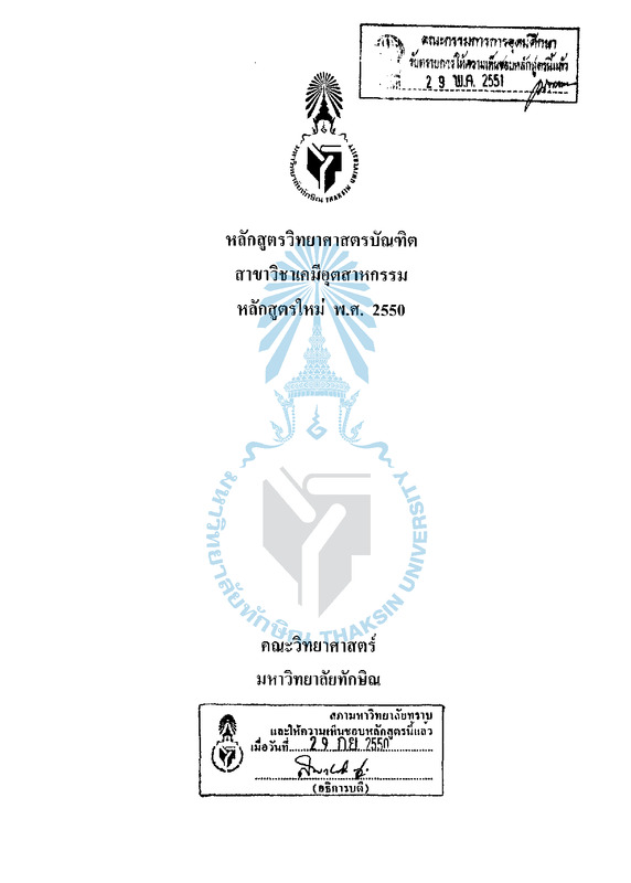 หลักสูตรวิทยาศาสตร์บัณฑิตสาขาวิชาเคมีอุตสาหกรรม หลักสูตรใหม่ พ.ศ.2547 ประกาศ ณ วันที่ 28 เมษายน 2560