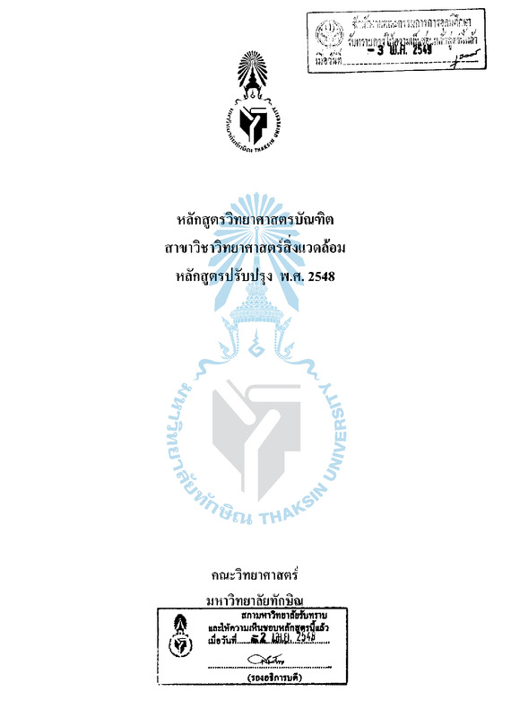 หลักสูตรวิทยาศาสตร์บัณฑิตสาขาวิชาวิทยาศาสตร์สิ่งแวดล้อม หลักสูตรปรับปรุง พ.ศ.2548 ประกาศ ณ วันที่ 16 กุมภาพันธ์ 2541