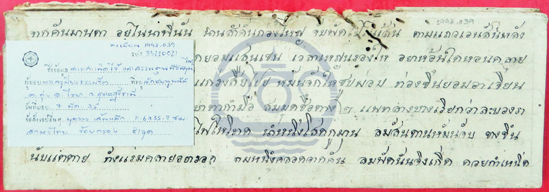 บุดขาว เส้นหมึก ขนาด 11.6*35.2 ซ.ม. อักษรไทย ร้อยกรอง ชำรุด