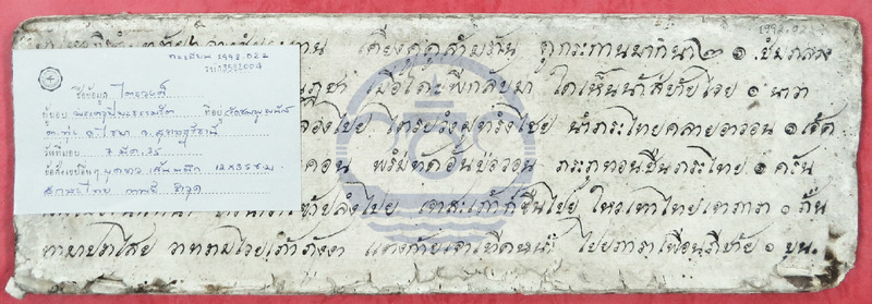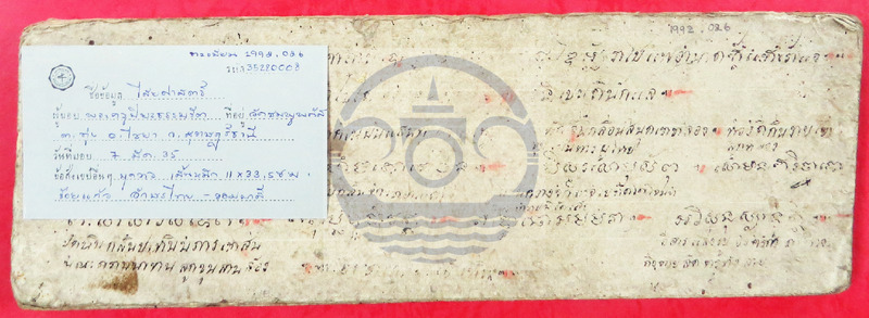 บุดขาว เส้นดินสอ ขนาด 10.2*33.5 ซ.ม. อักษรไทย - ขอม ชำรุด